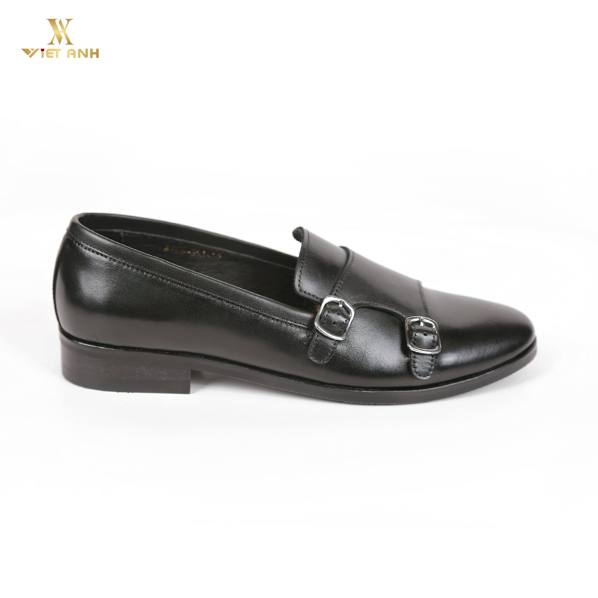 Giày Loafer Đế cao su Da bò Monkstrap đen