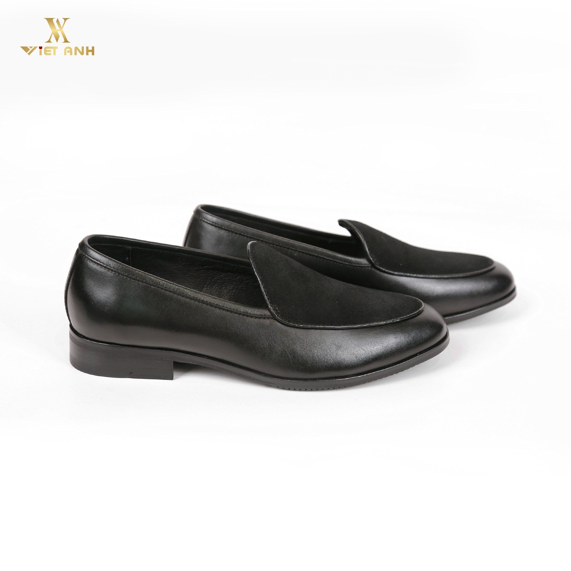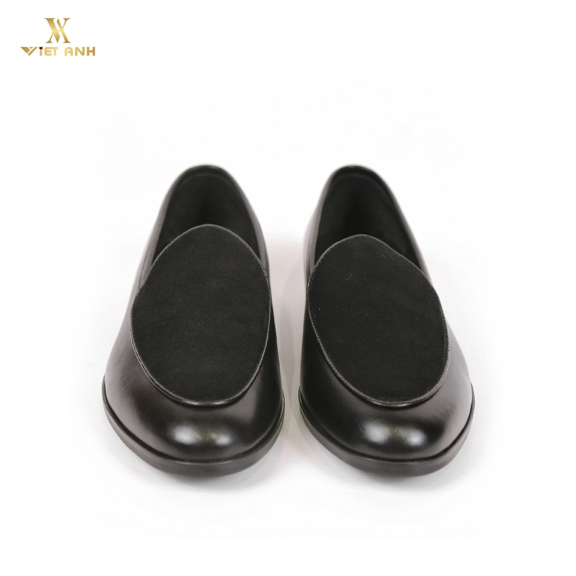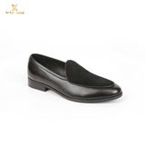 Giày Loafer Đế cao su Da bò Mã 553 đen vá da lộn